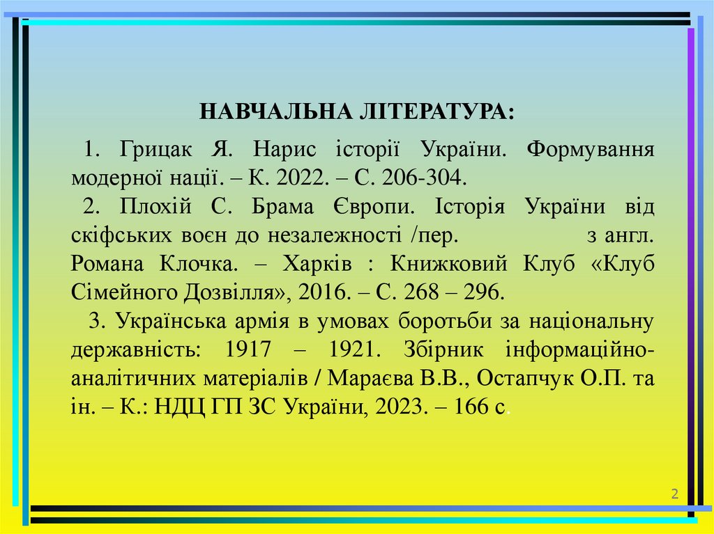 НАВЧАЛЬНА ЛІТЕРАТУРА:1. Грицак Я. Нарис історії України. Формування