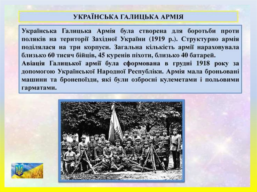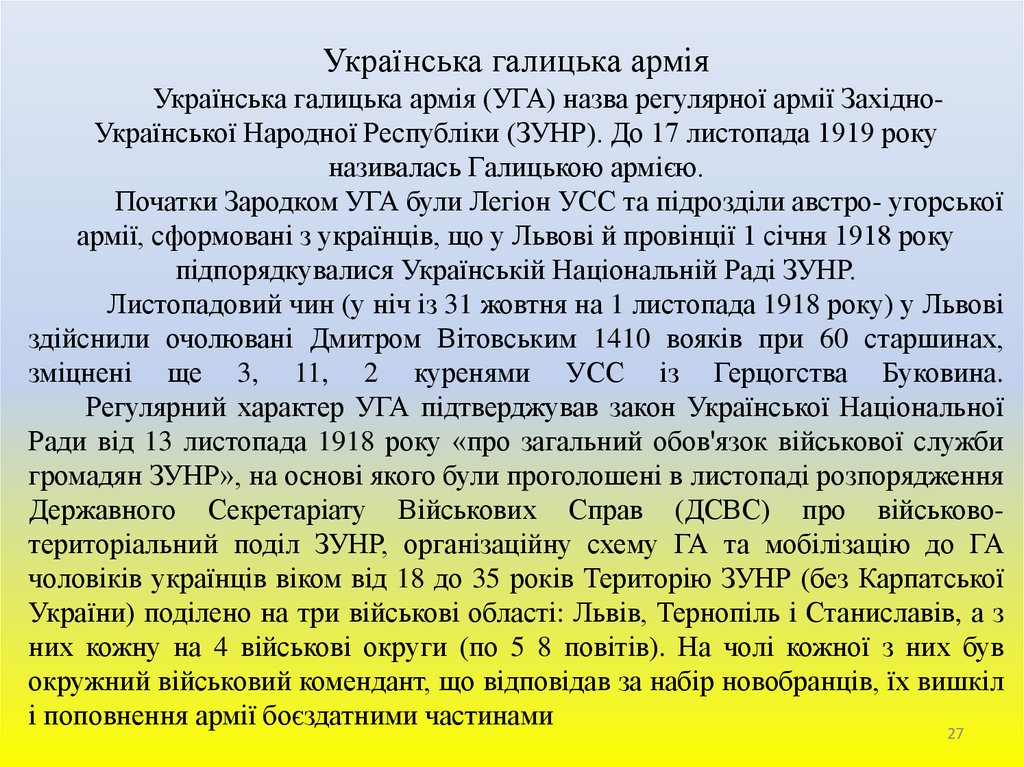 Початки Зародком УГА були Легіон УСС та підрозділи австро- угорської