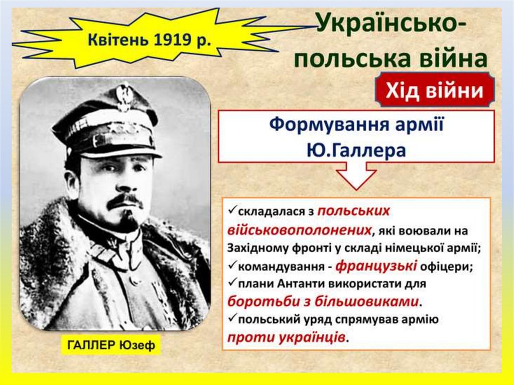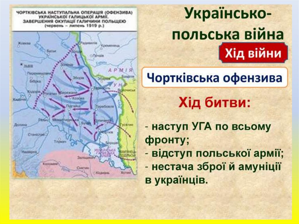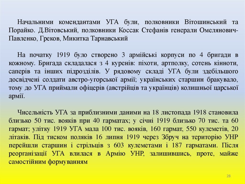 гармат; улітку 1919 УГА мала 100 тис. вояків, 160 гармат, 550 кулеметів, 20