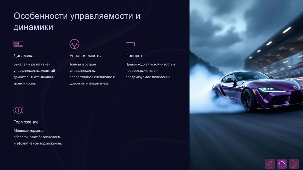 Особенности управляемости и динамики