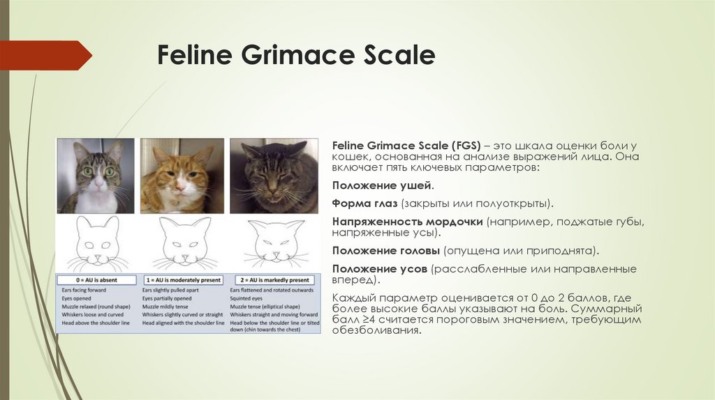 Feline Grimace Scale для оценки выражений лица у кошек, например, с помощью
