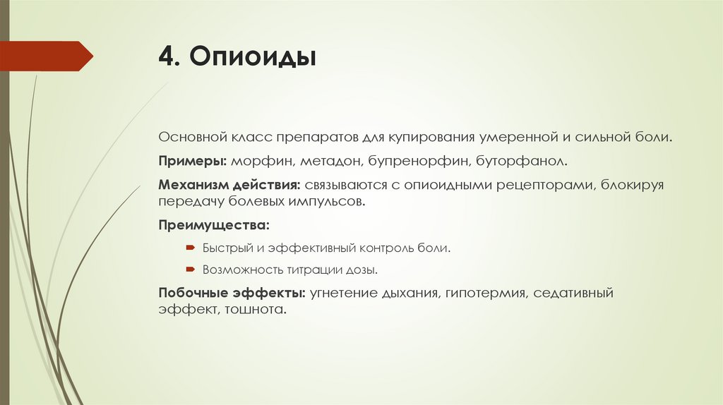 Примеры: остеоартрит, онкологическая боль,