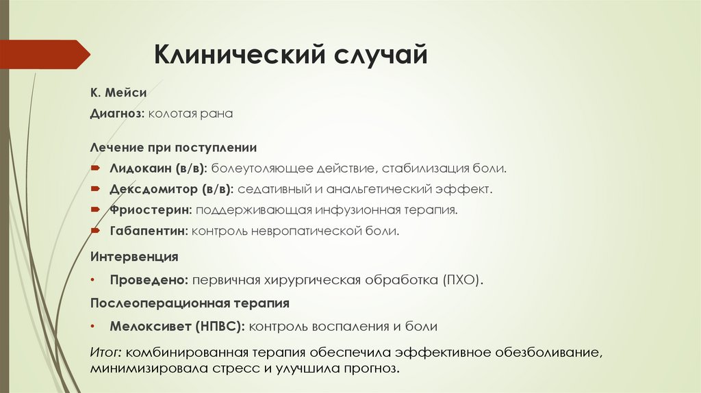 Итог: комбинированная терапия обеспечила эффективное обезболивание,