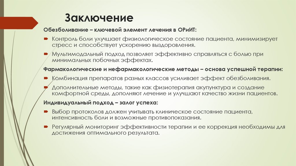 ЗаключениеОбезболивание – ключевой элемент лечения в ОРиИТ: