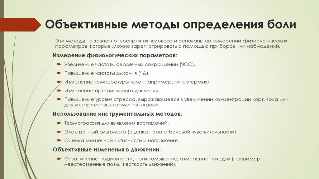 Объективные методы определения болиЭти методы не зависят от восприятия человека и основаны на измерении физиологических