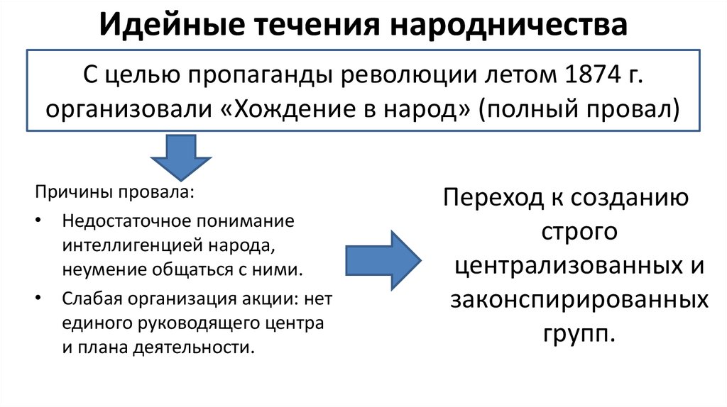 С целью пропаганды революции летом 1874 г.организовали «Хождение в народ» (полный провал)