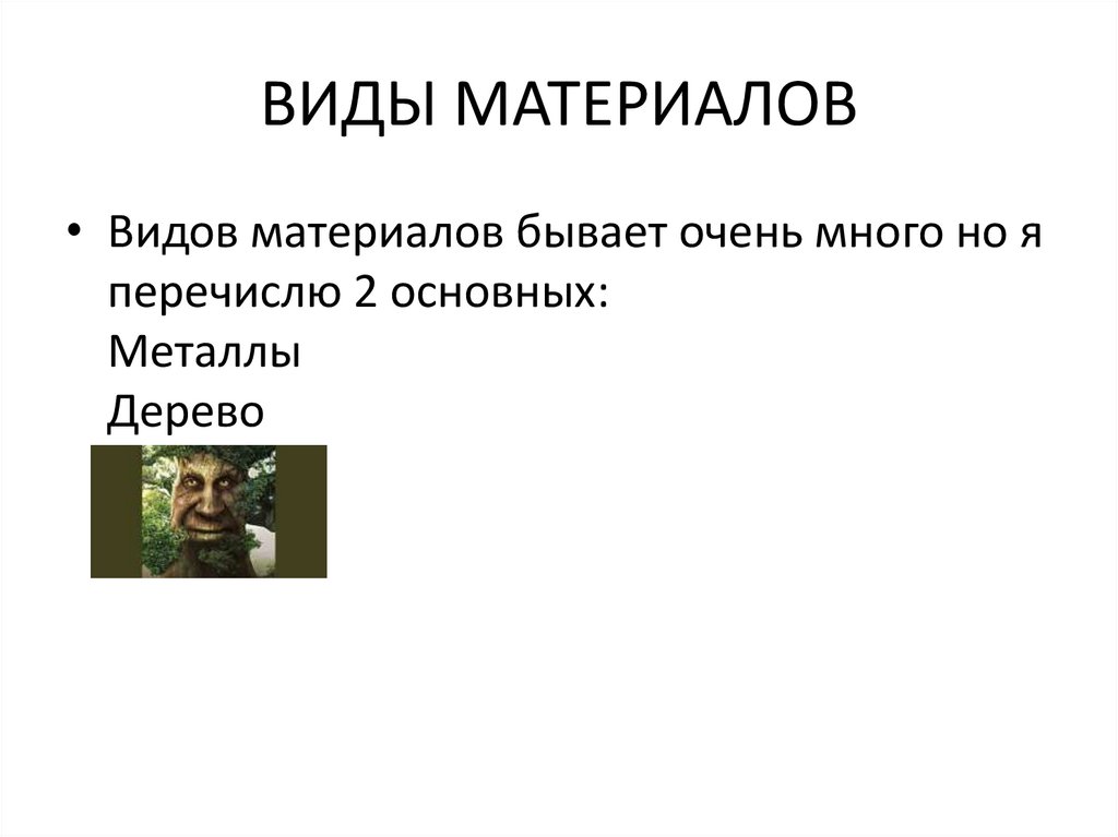 ВИДЫ МАТЕРИАЛОВ• Видов материалов бывает очень много но я