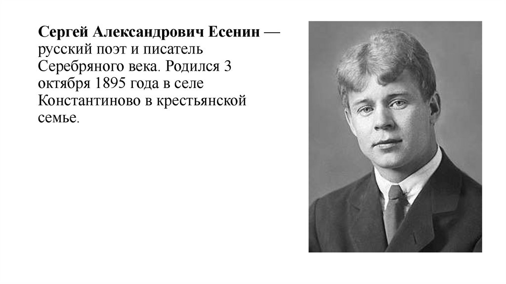 Сергей Александрович Есенин —русский поэт и писатель