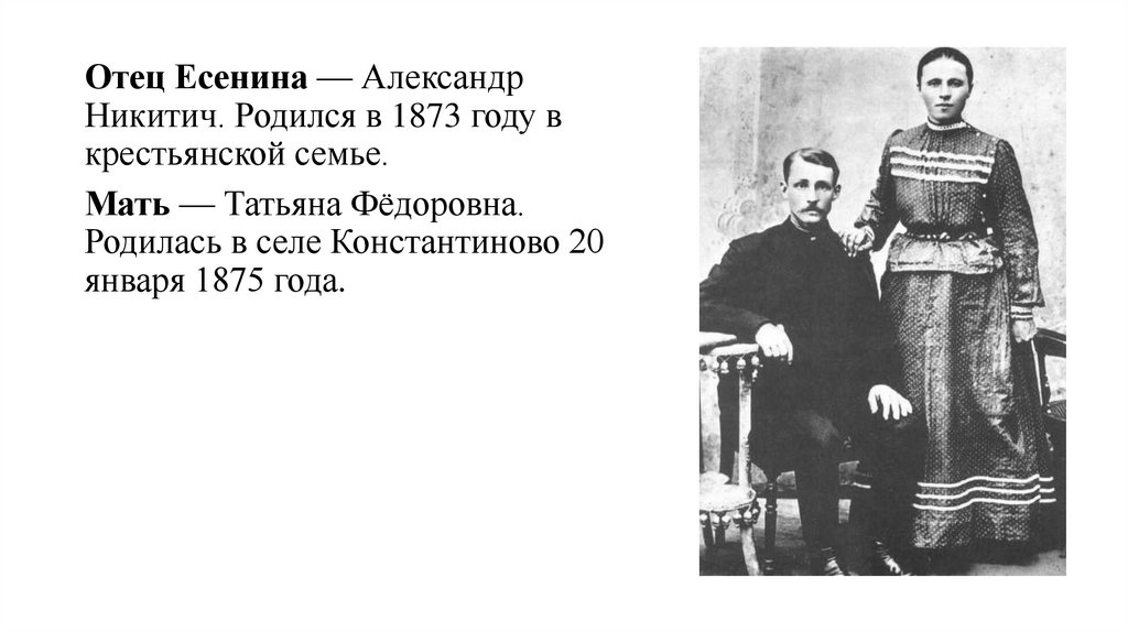 Отец Есенина — АлександрНикитич. Родился в 1873 году в