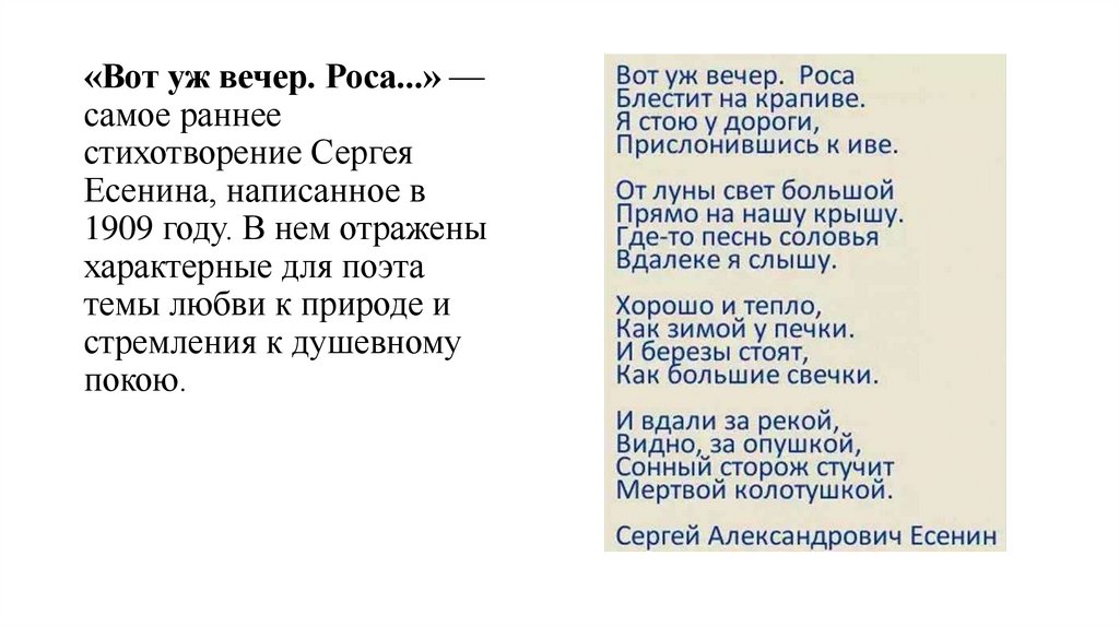 «Вот уж вечер. Роса...» —самое раннее