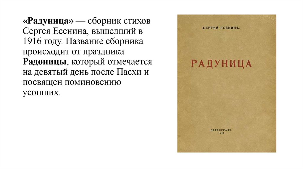 «Радуница» — сборник стиховСергея Есенина, вышедший в