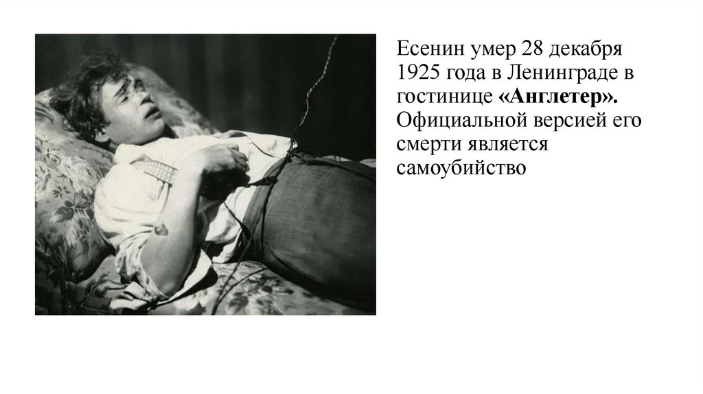 Есенин умер 28 декабря1925 года в Ленинграде в