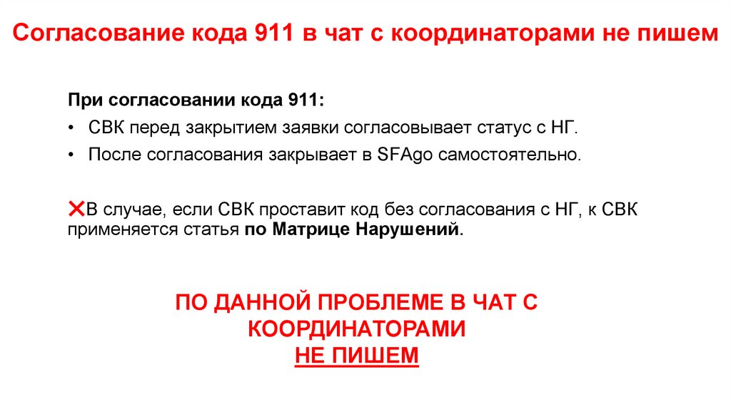 Согласование кода 911 в чат с координаторами не пишемПри согласовании кода 911: