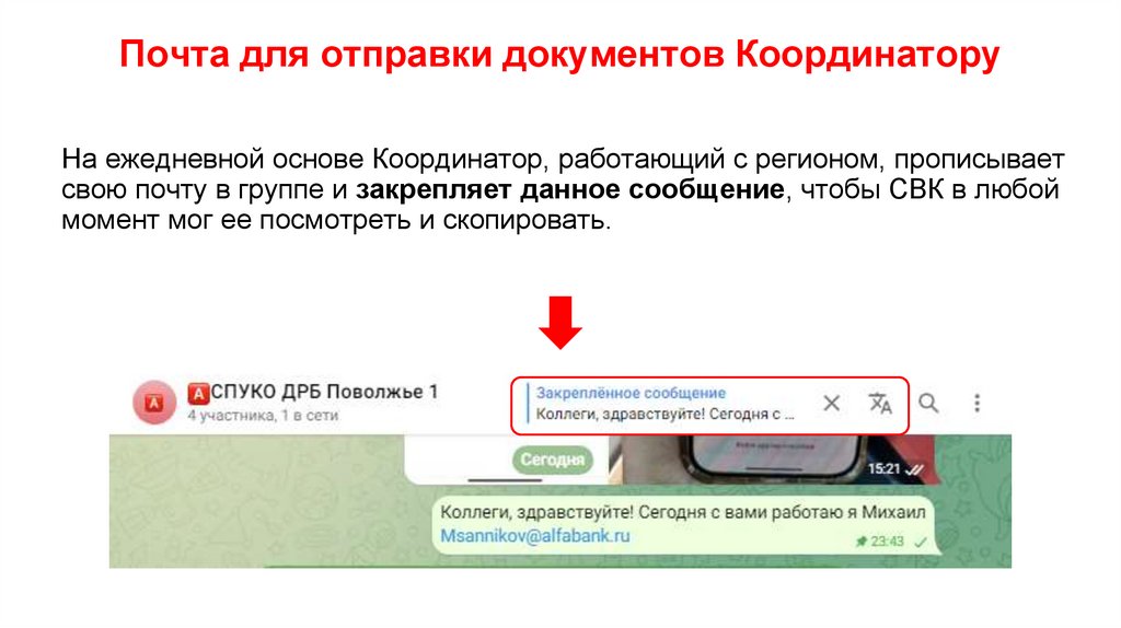 Почта для отправки документов КоординаторуНа ежедневной основе Координатор, работающий с регионом, прописывает