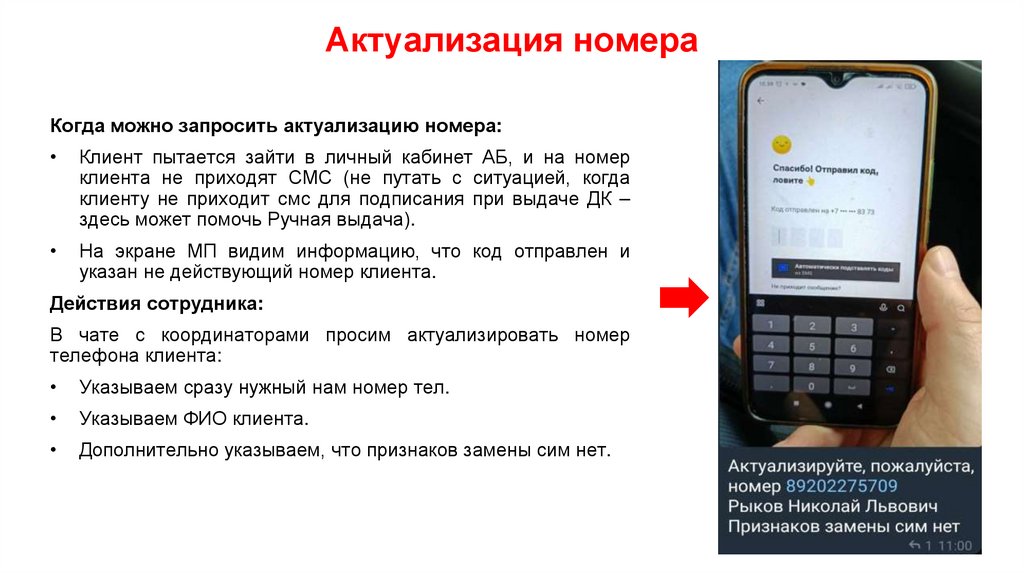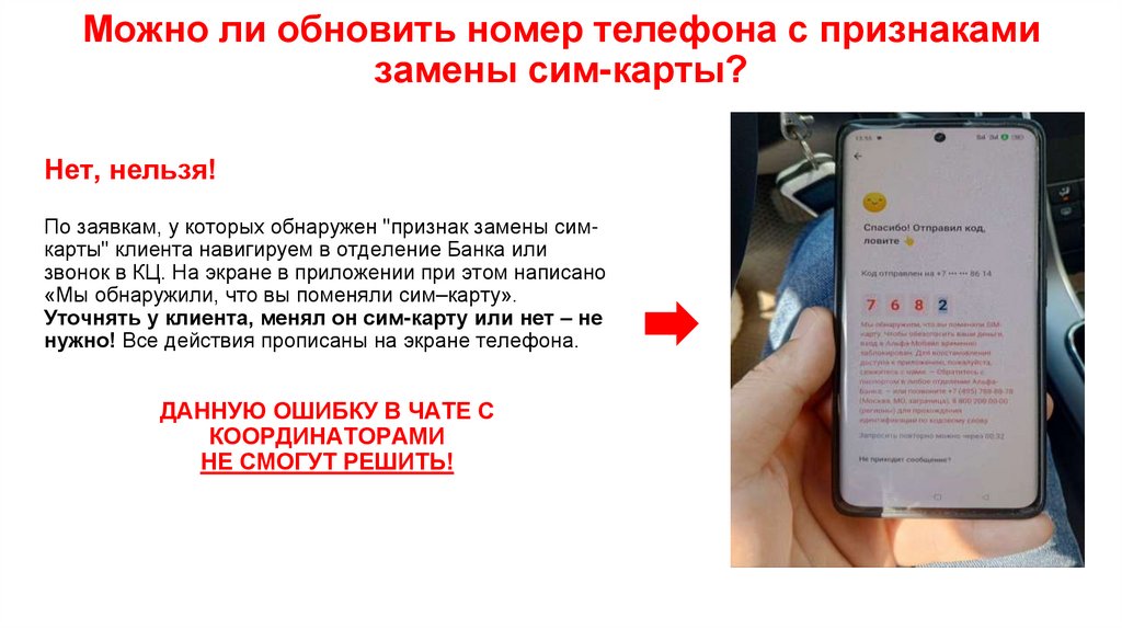 Можно ли обновить номер телефона с признакамизамены сим-карты?