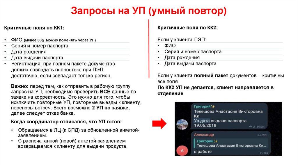 Запросы на УП (умный повтор)Критичные поля по КК1: