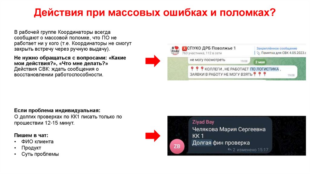 Действия при массовых ошибках и поломках?В рабочей группе Координаторы всегда