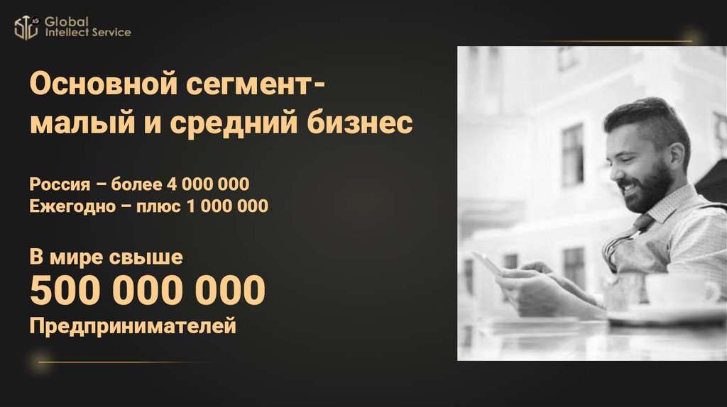 Основной сегментмалый и средний бизнесРоссия – более 4 000 000