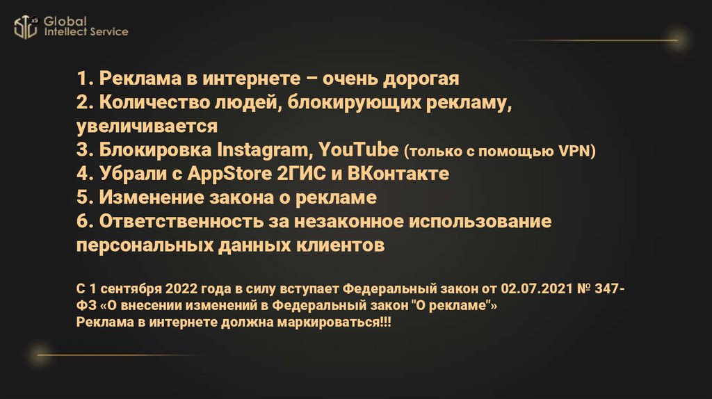 1. Реклама в интернете – очень дорогая2. Количество людей, блокирующих рекламу,