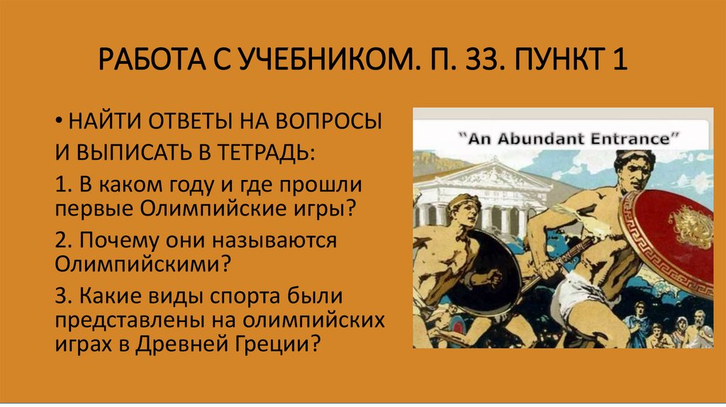 ДОМАШНЕЕ ЗАДАНИЕ1. Пересказ параграфа 33 "Олимпийские