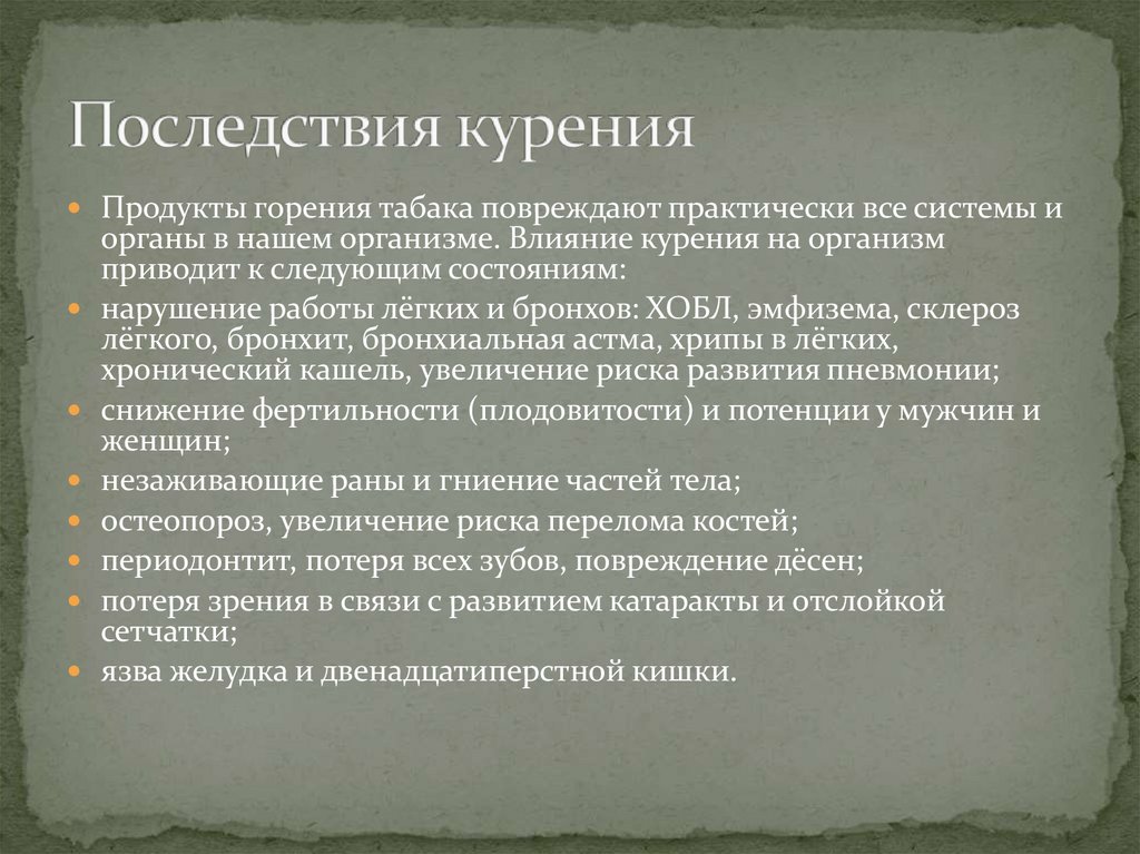 Продукты горения табака повреждают практически все системы иорганы в нашем организме. Влияние курения на организм