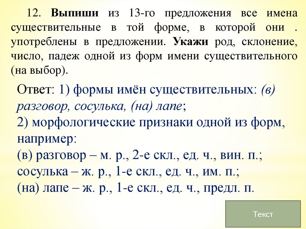 12. Выпиши из 13-го предложения все именасуществительные в той форме, в которой они .