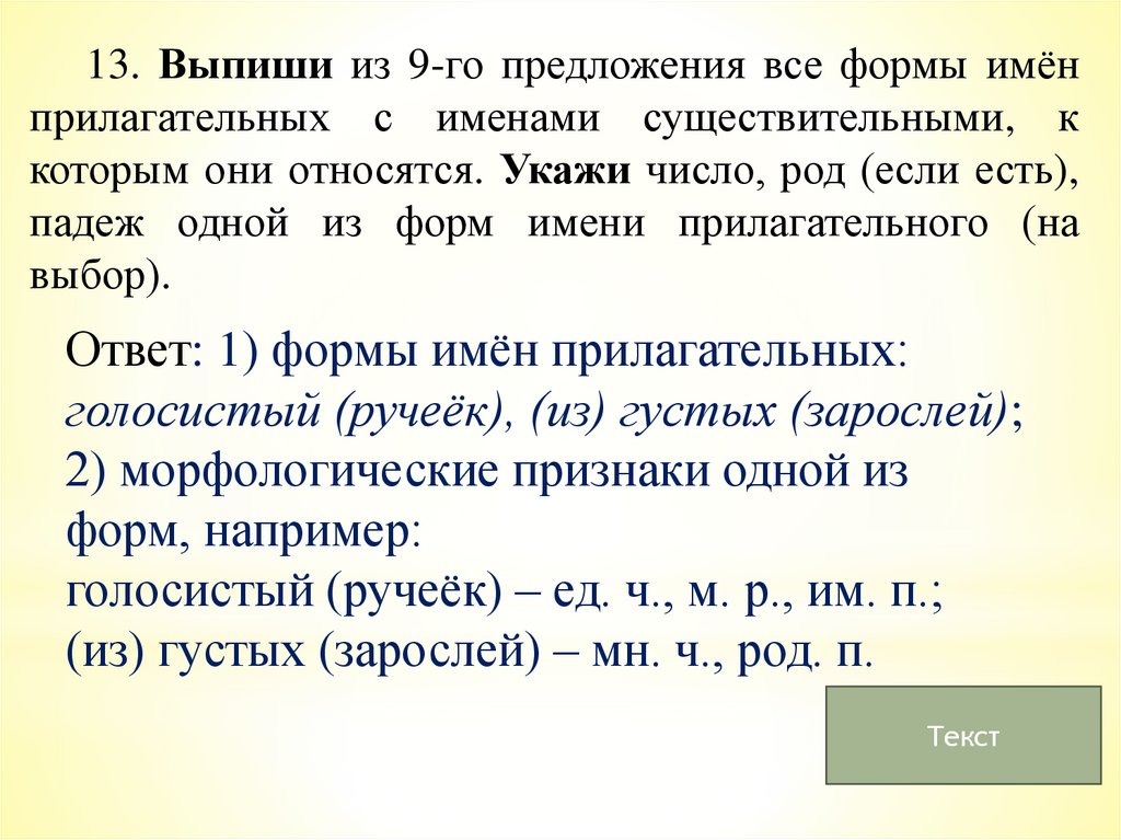13. Выпиши из 9-го предложения все формы имёнприлагательных с именами существительными, к