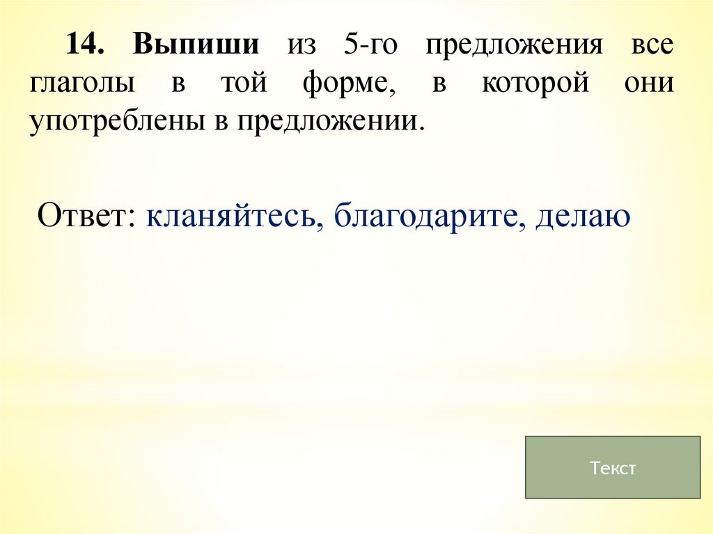 14. Выпиши из 5-го предложения всеглаголы в той форме, в которой они