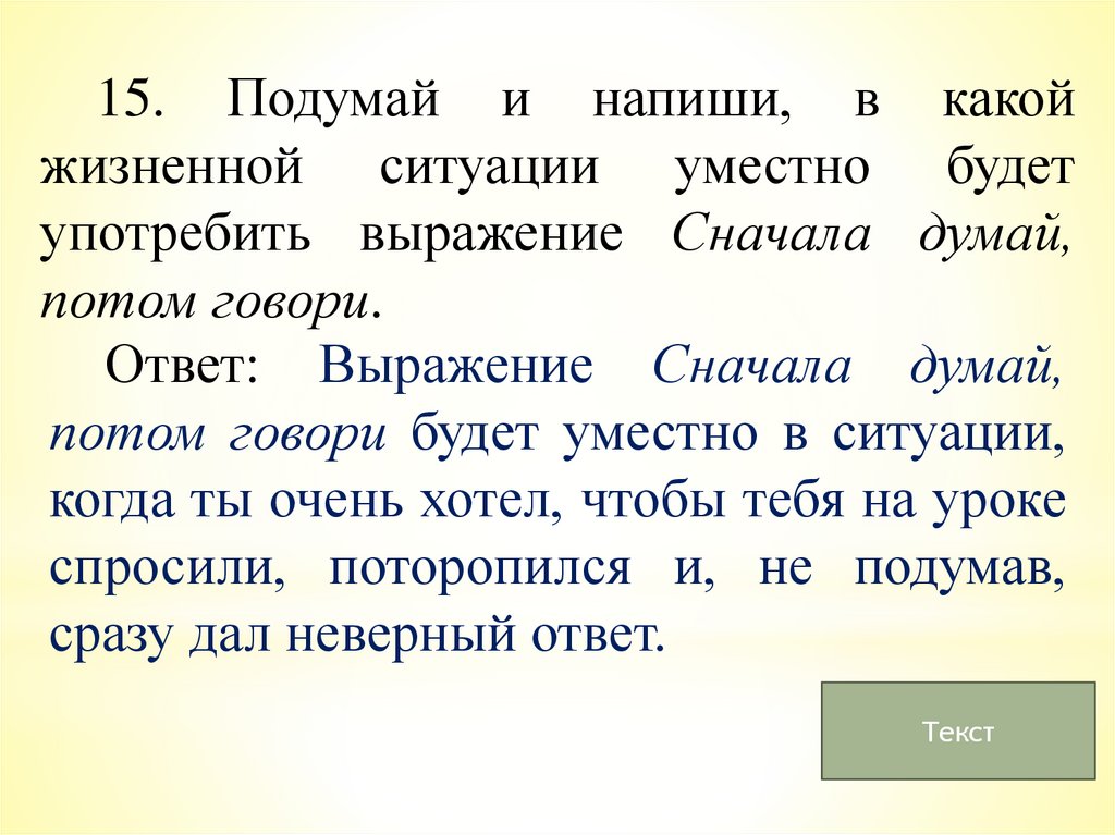 15. Подумай и напиши, в какойжизненной ситуации уместно будет