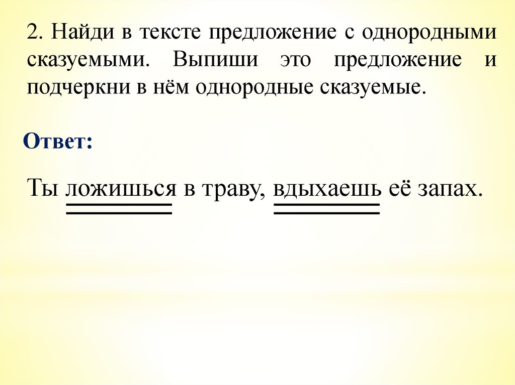 2. Найди в тексте предложение с однороднымисказуемыми. Выпиши это предложение и