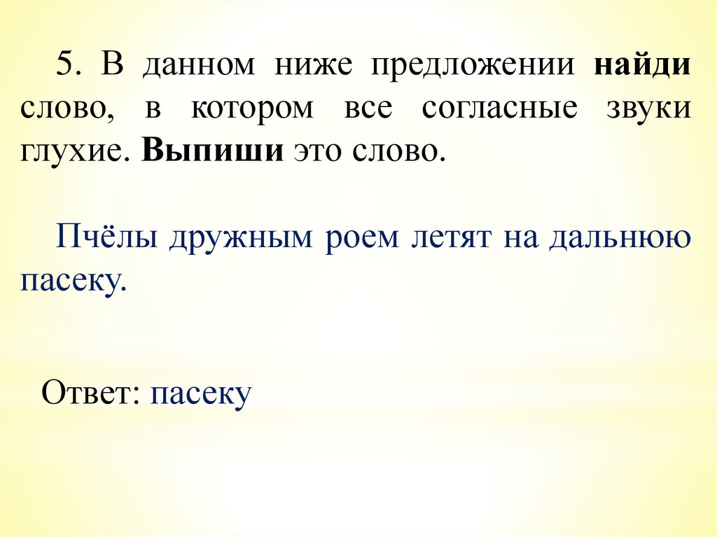 5. В данном ниже предложении найдислово, в котором все согласные звуки