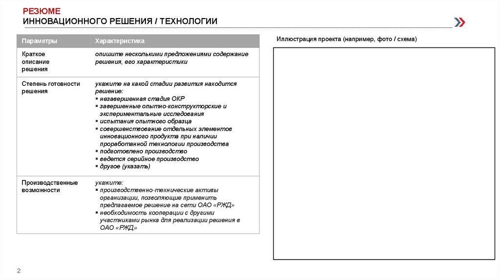 РЕЗЮМЕИННОВАЦИОННОГО РЕШЕНИЯ / ТЕХНОЛОГИИ