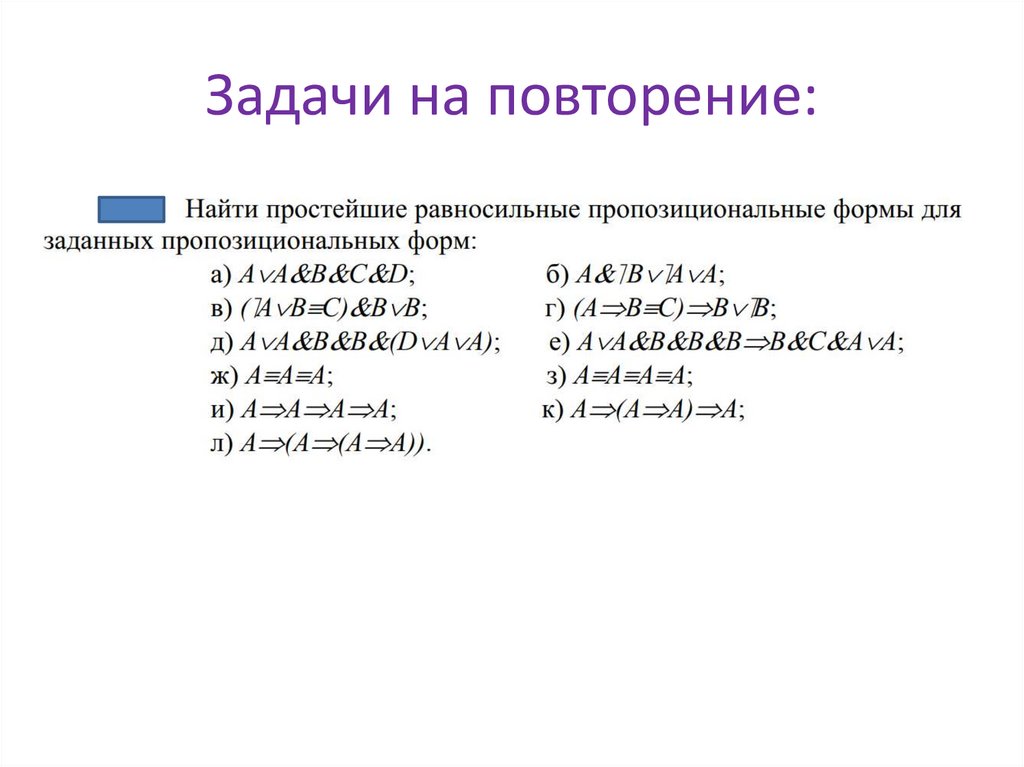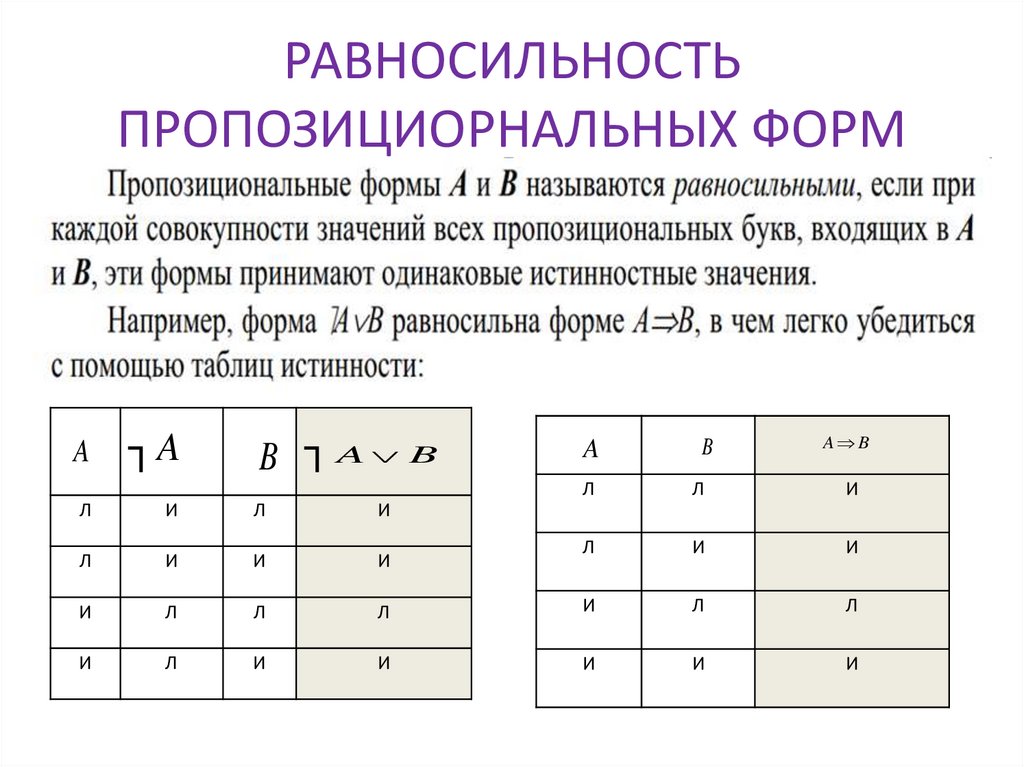 РАВНОСИЛЬНОСТЬПРОПОЗИЦИОРНАЛЬНЫХ ФОРМ