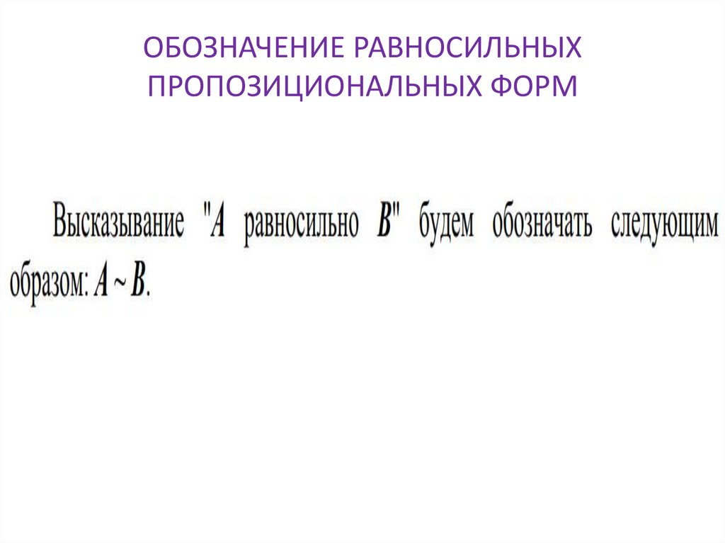 ОБОЗНАЧЕНИЕ РАВНОСИЛЬНЫХПРОПОЗИЦИОНАЛЬНЫХ ФОРМ