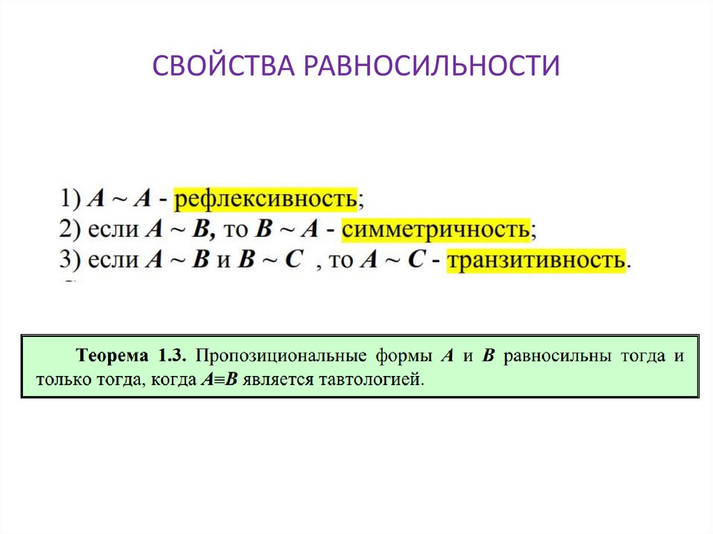 СВОЙСТВА РАВНОСИЛЬНОСТИ16.