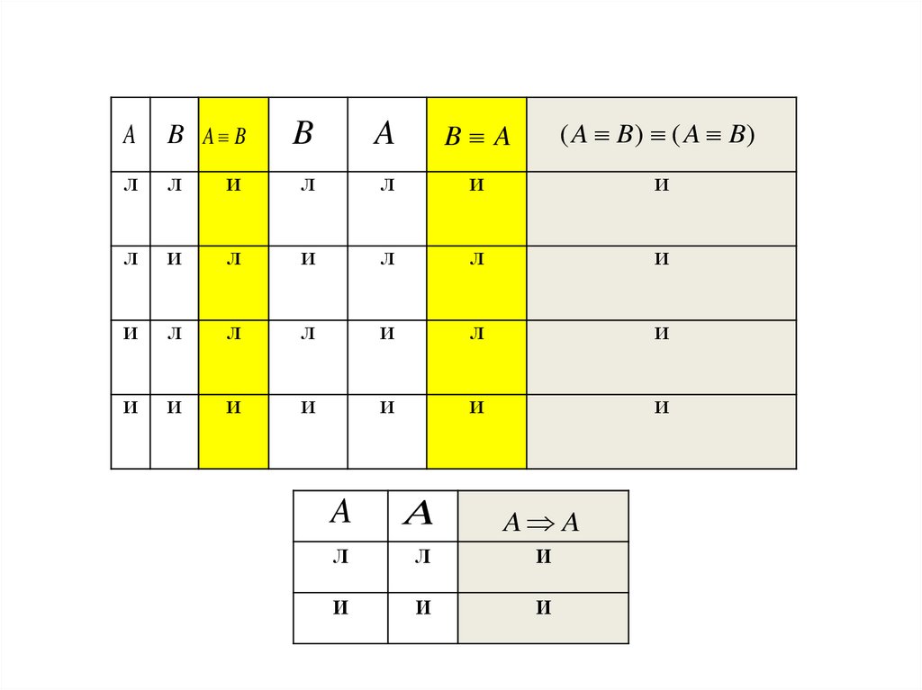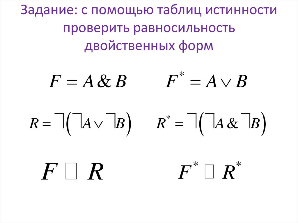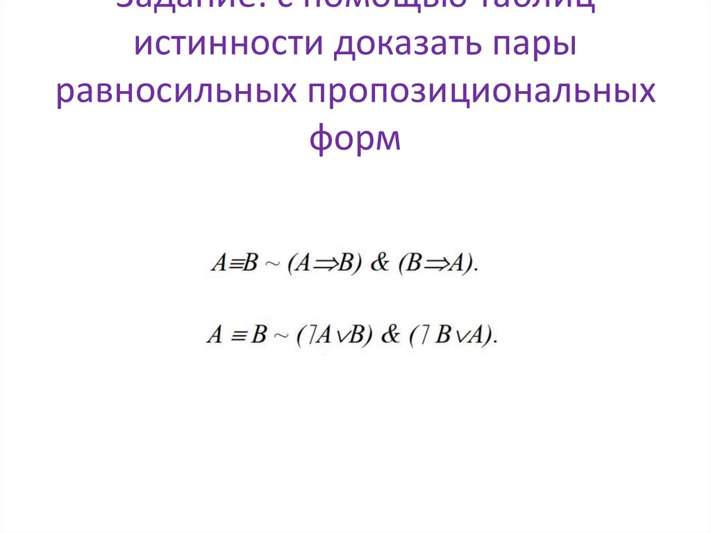 Задание: с помощью таблиц истинностипроверить равносильность