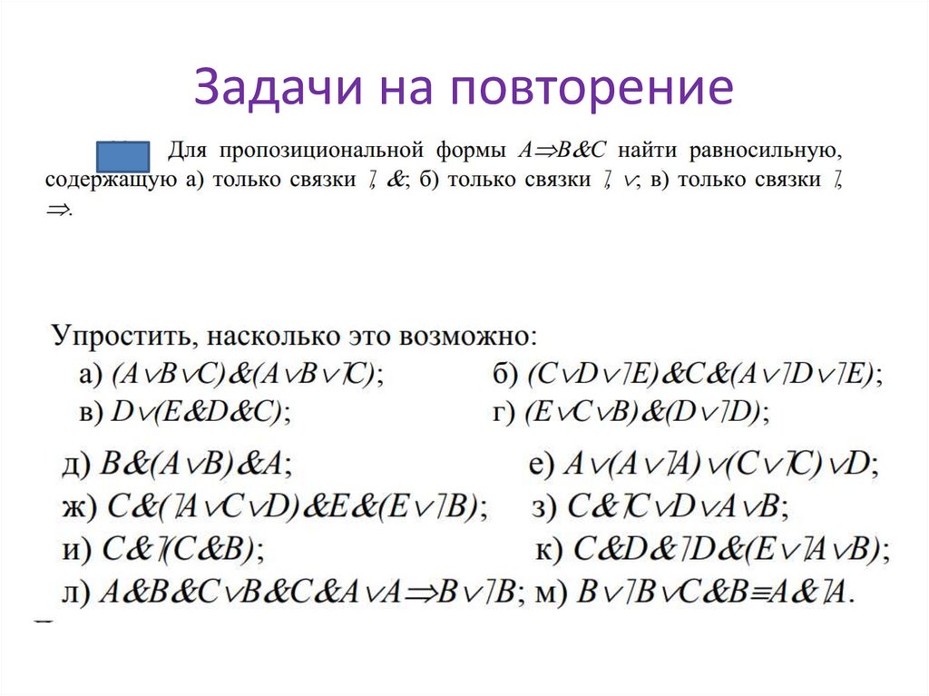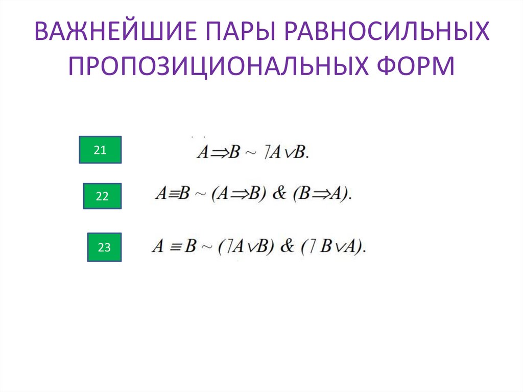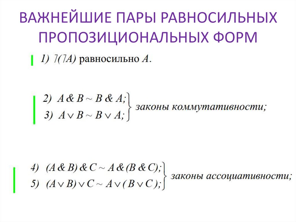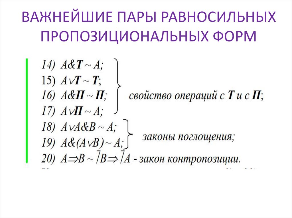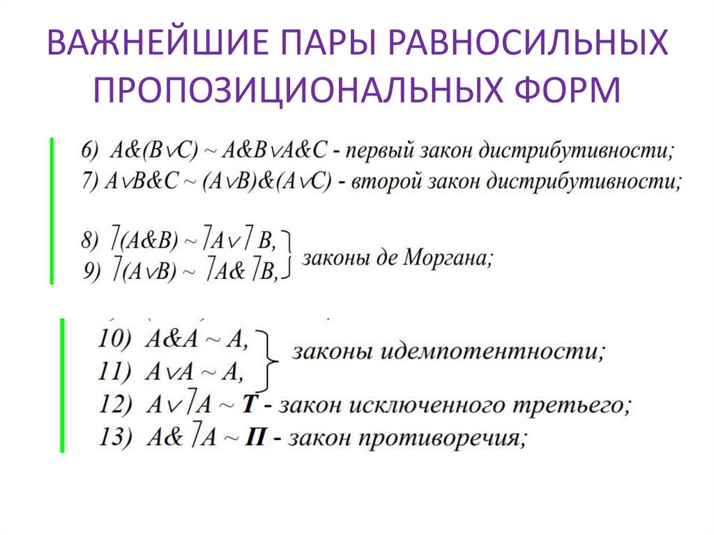 ВАЖНЕЙШИЕ ПАРЫ РАВНОСИЛЬНЫХПРОПОЗИЦИОНАЛЬНЫХ ФОРМ