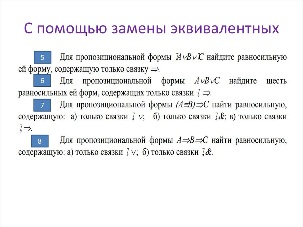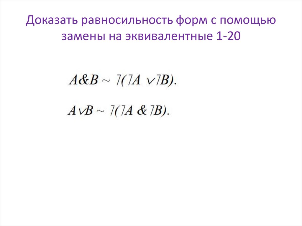 Доказать равносильность форм с помощьюзамены на эквивалентные 1-20