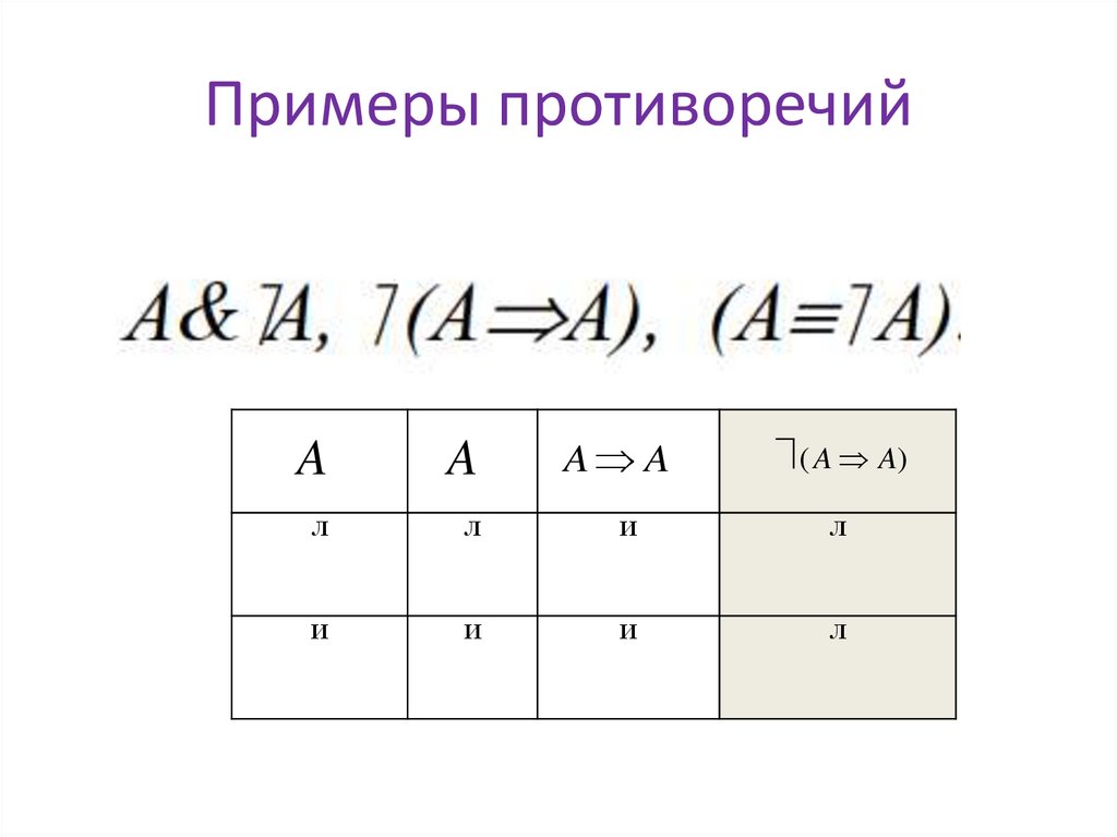 Примеры противоречийA