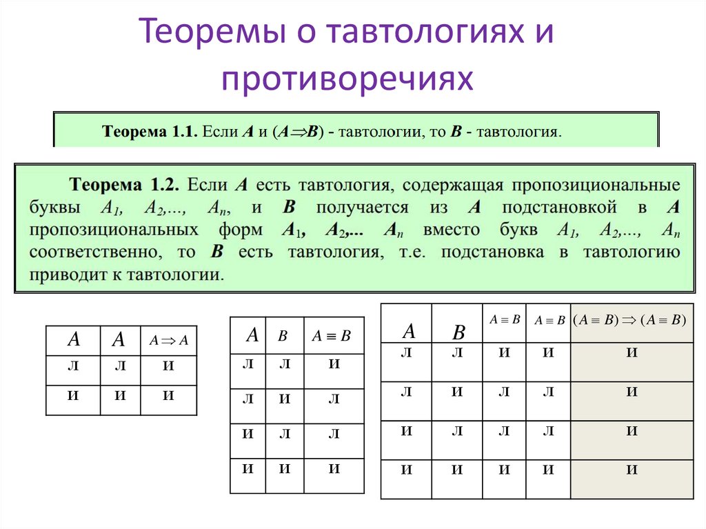 Теоремы о тавтологиях ипротиворечиях