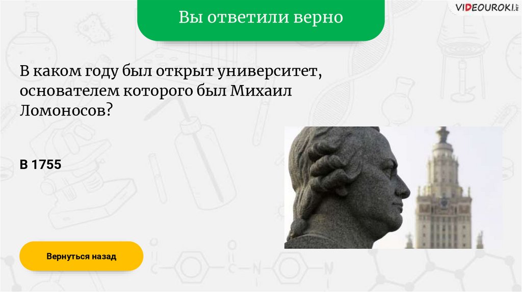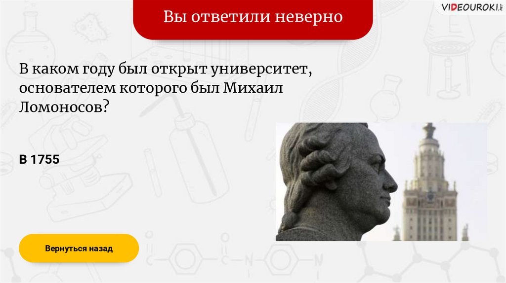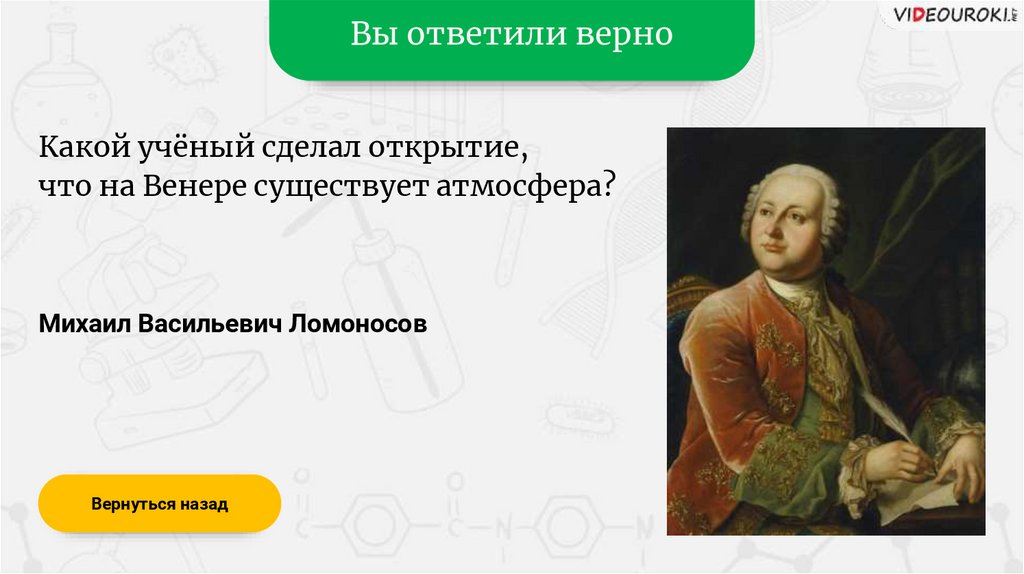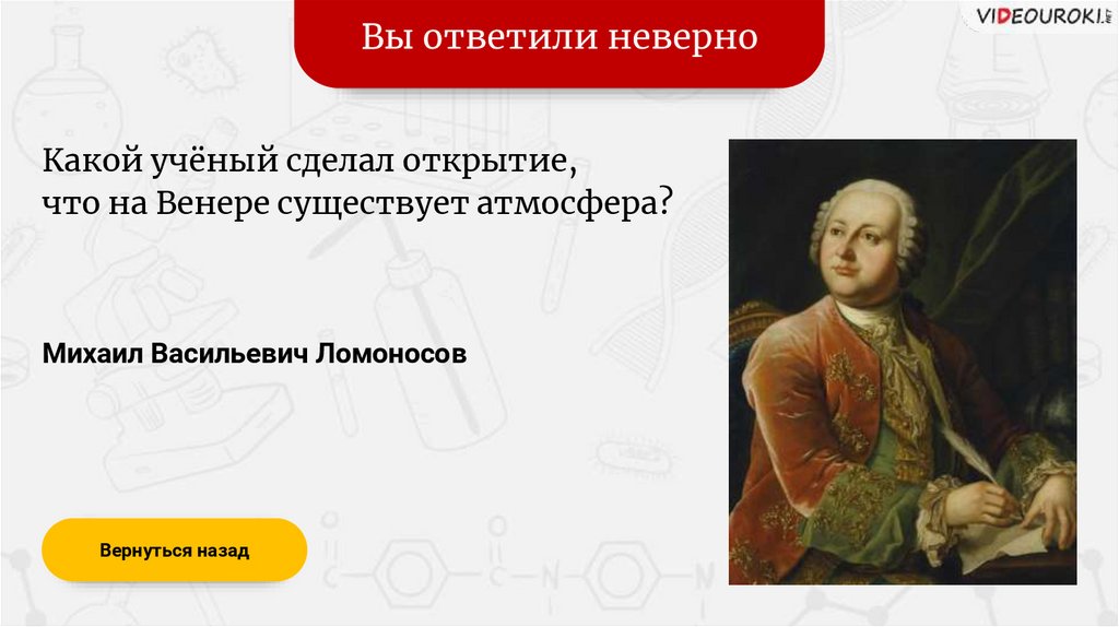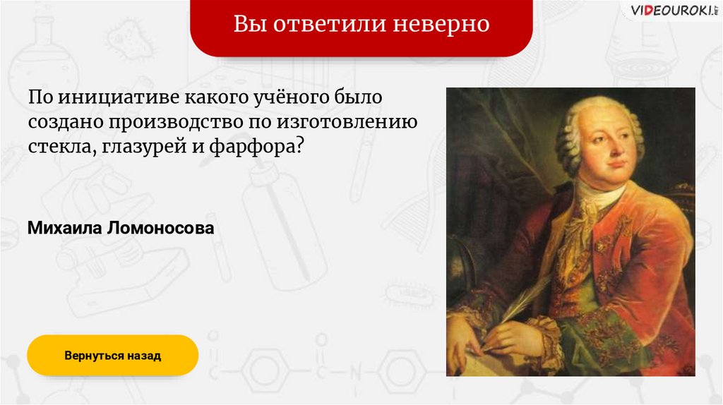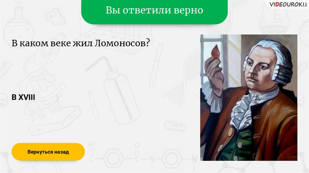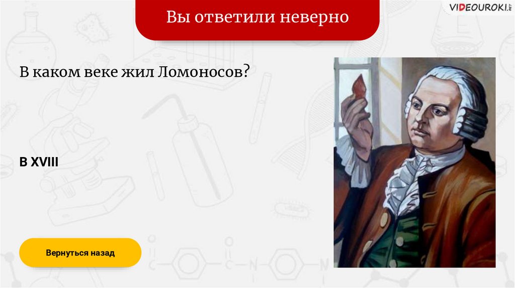 Вы ответили верноВ каком веке жил Ломоносов?