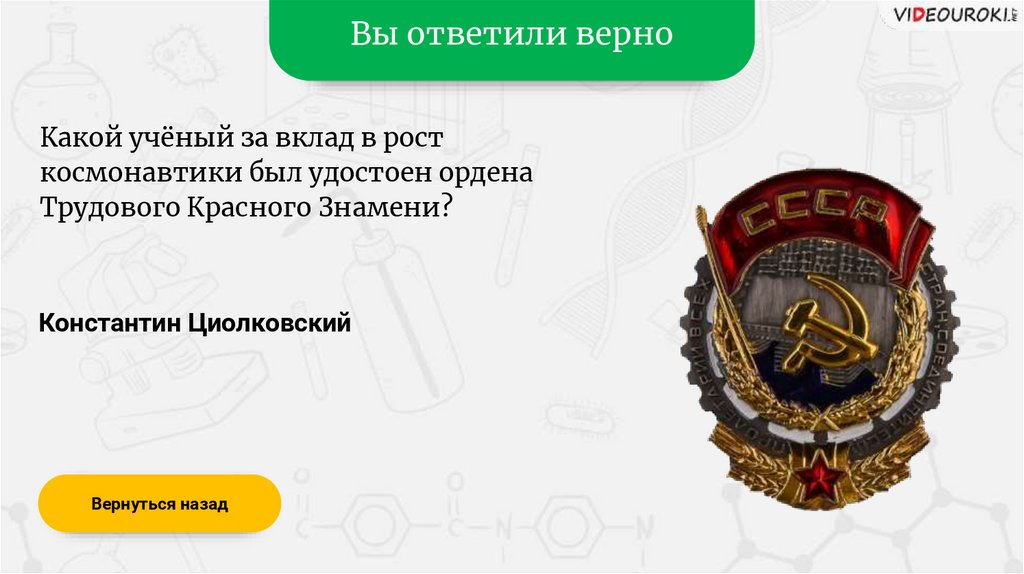 Вы ответили верноКакой учёный за вклад в рост