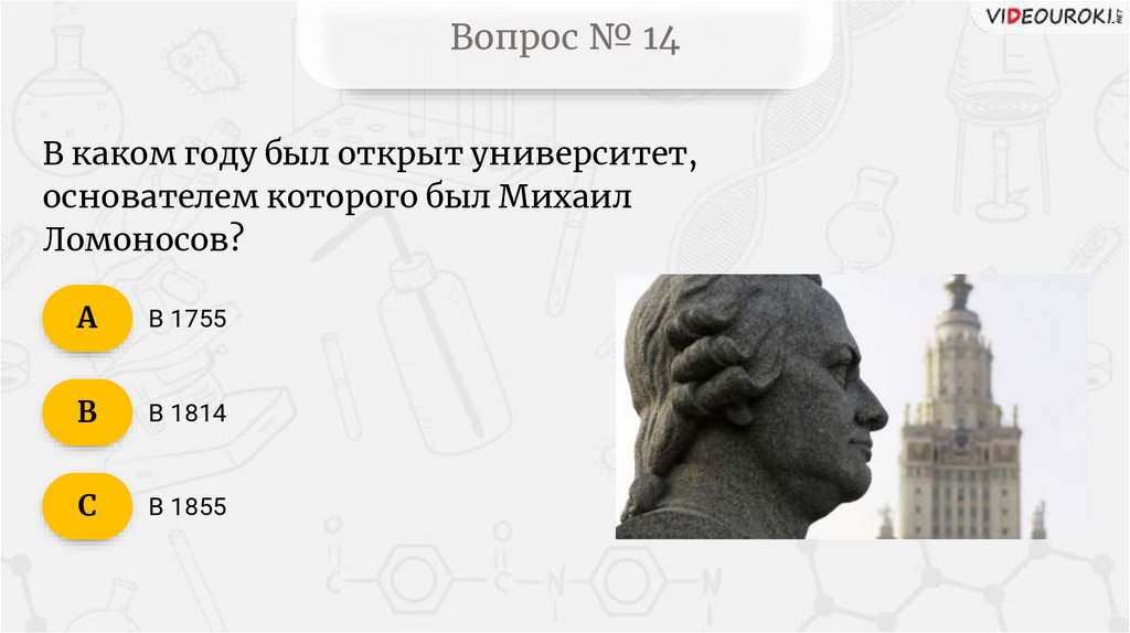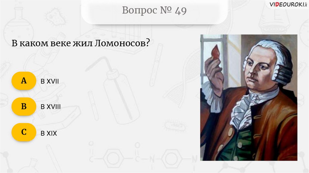 Вопрос № 49В каком веке жил Ломоносов?