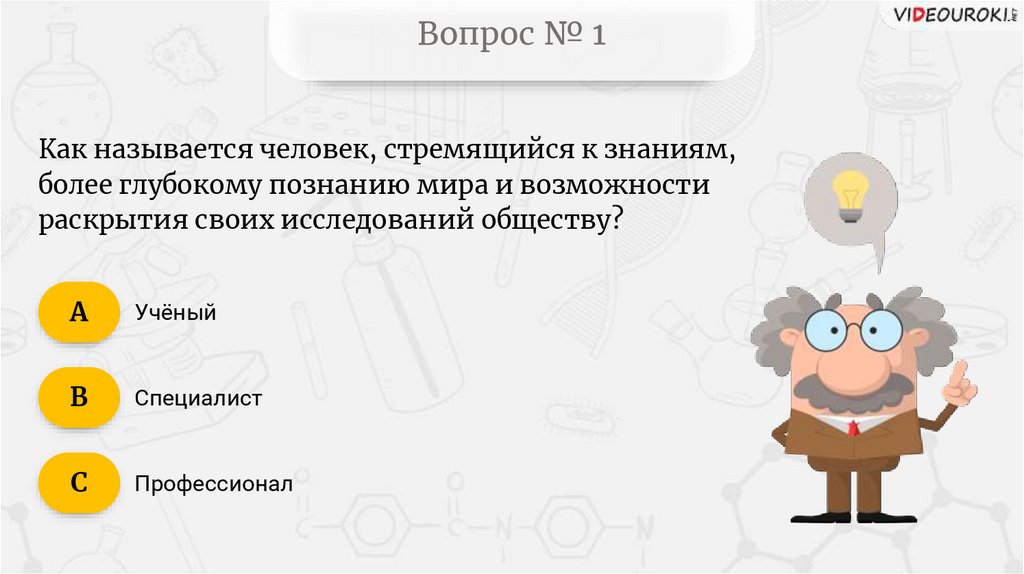 Вопрос № 1Как называется человек, стремящийся к знаниям,