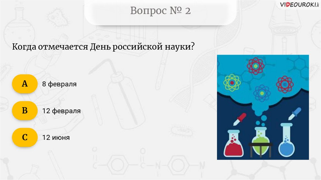 Вопрос № 2Когда отмечается День российской науки?