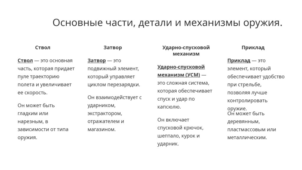 Основные части, детали и механизмы оружия