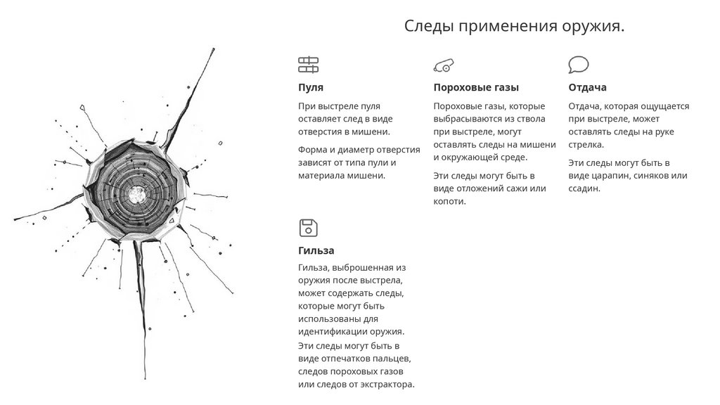 Следы применения оружия.Пуля
