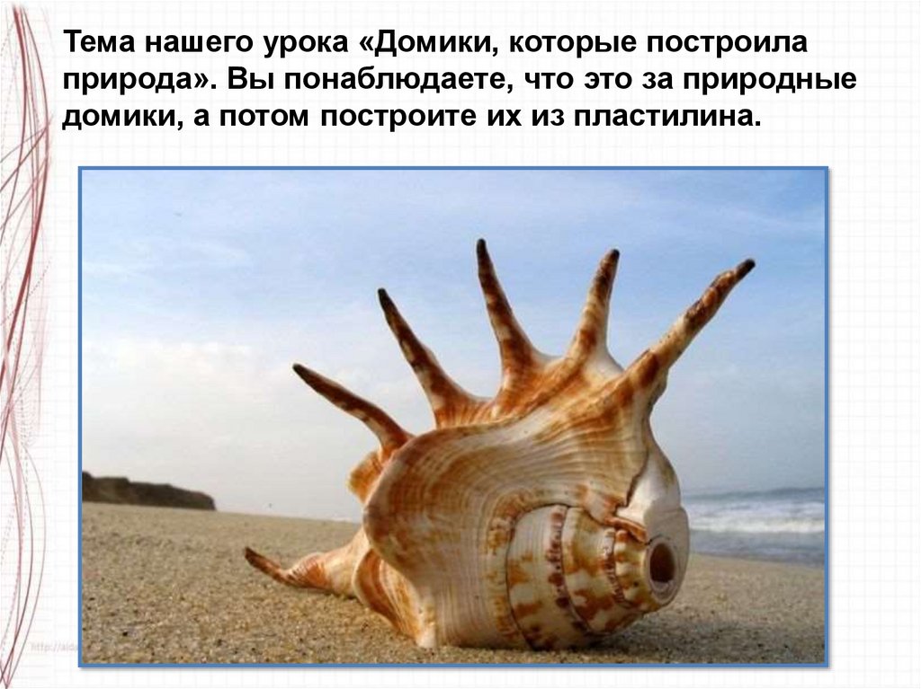 Тема нашего урока «Домики, которые построилаприрода». Вы понаблюдаете, что это за природные