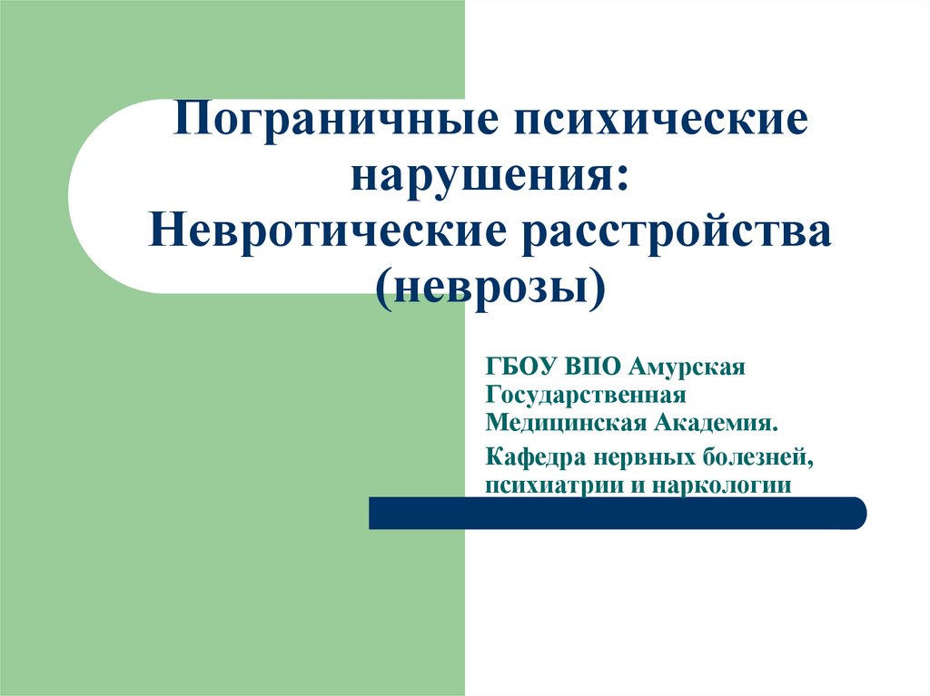 1. Пограничные психические нарушения: Невротические расстройства (неврозы)