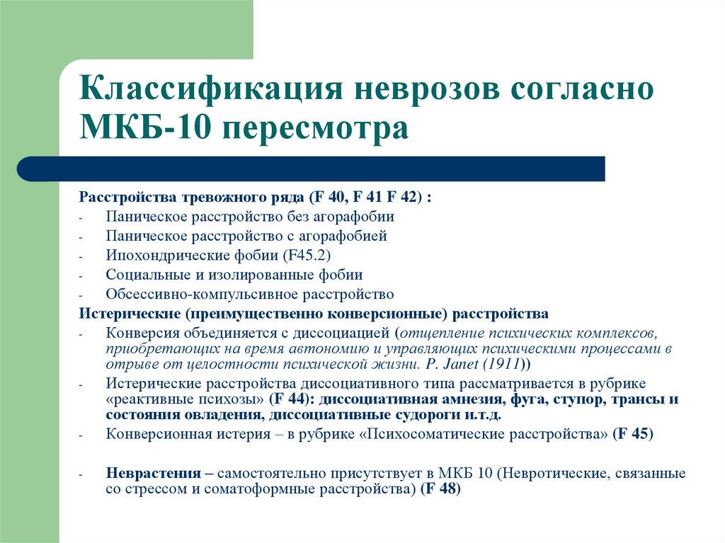 11. Классификация неврозов согласно МКБ-10 пересмотра